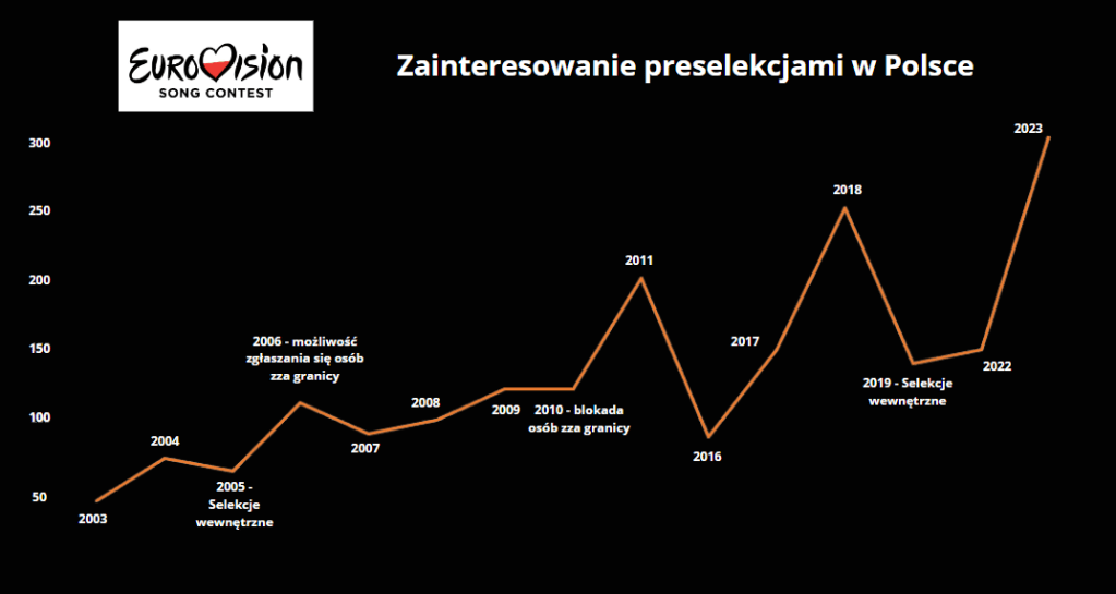 Nieco ponad 7 miesięcy pozostaje do finału Eurowizji 2024, a wielu nadawców jest już w ferworze procesów wybierających nowych uczestników konkursu. Wraz z końcem września zakończyły się etapy przyjmowania zgłoszeń w kilku krajach, coraz częściej pojawiają się też nowe informacje związane z finałami narodowymi, ale nie tylko! Telewizja Luksemburga 🇱🇺 poinformowała, że przyjęto łącznie 459 utworów-propozycji do preselekcji narodowych, a w tej puli są piosenki zarówno z przypisanymi już wykonawcami, jak i takie w wersji demo. W tym drugim przypadku RTL może wskazać wykonawcę spośród kandydatów castingowych. Jednym z kompozytorów utworów jest Ralph Siegel, eurowizyjny weteran, który przygotował już wiele eurowizyjnych piosenek (lepszej czy gorszej jakości). Niemiec przygotował 3 piosenki dla Luksemburga. W Holandii 🇳🇱 przyjęto ponad 600 aplikacji na reprezentanta kraju – są tam różne języki utworów, różne gatunki muzyczne. Nadawca podał, że dominują utwory po angielsku, ale około stu znaleźć można w języku holenderskim, a są też takie języki jak francuski, hiszpański, a nawet turecki czy arabski. Autorem jednej z propozycji jest Douwe Bob (ESC 2016) – utwór napisany jest po angielsku, z domieszką języka berberyjskiego. W Azerbejdżanie 🇦🇿 do selekcji wewnętrznych wysłano 214 piosenek, z czego 126 jest autorstwa zagranicznych kompozytorów. Wśród zgłoszonych jest m.in. polski producent Tischner, o którego pracy więcej przeczytacie TUTAJ. Polak zgłosił do Ictimai więcej niż jeden utwór.