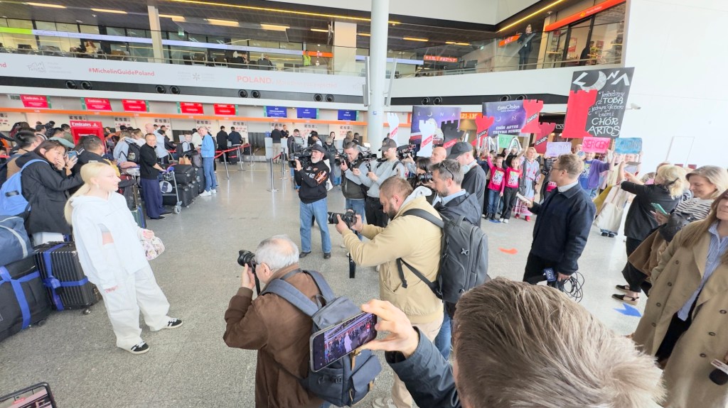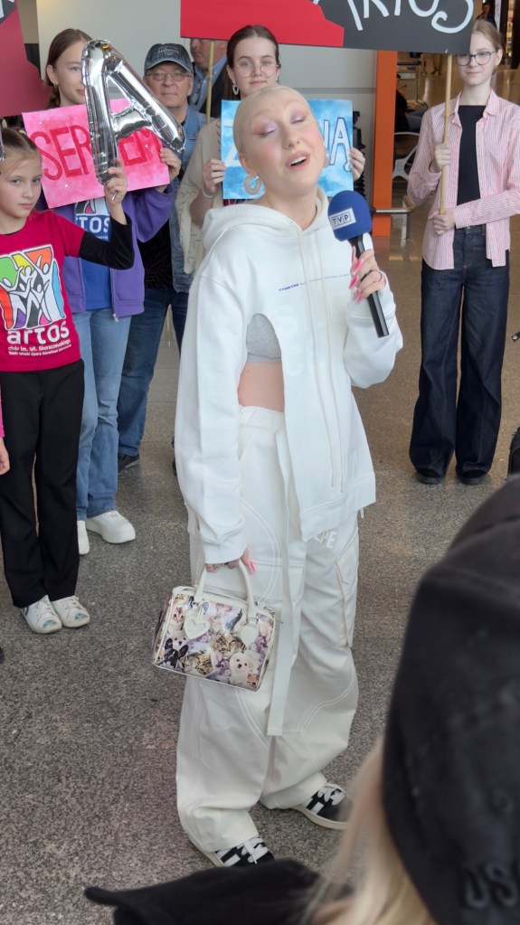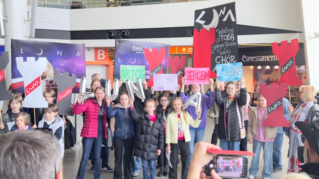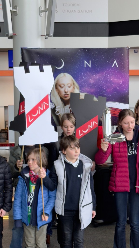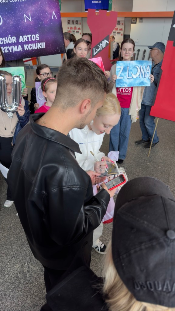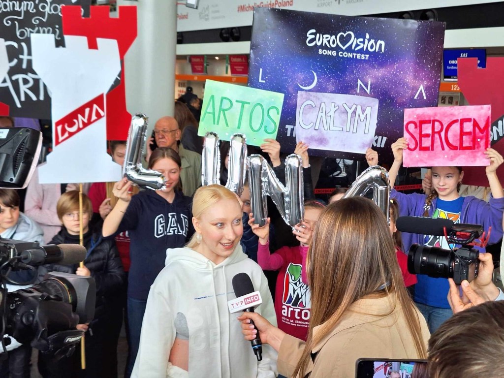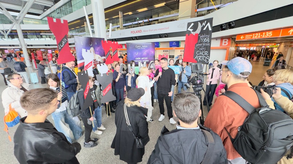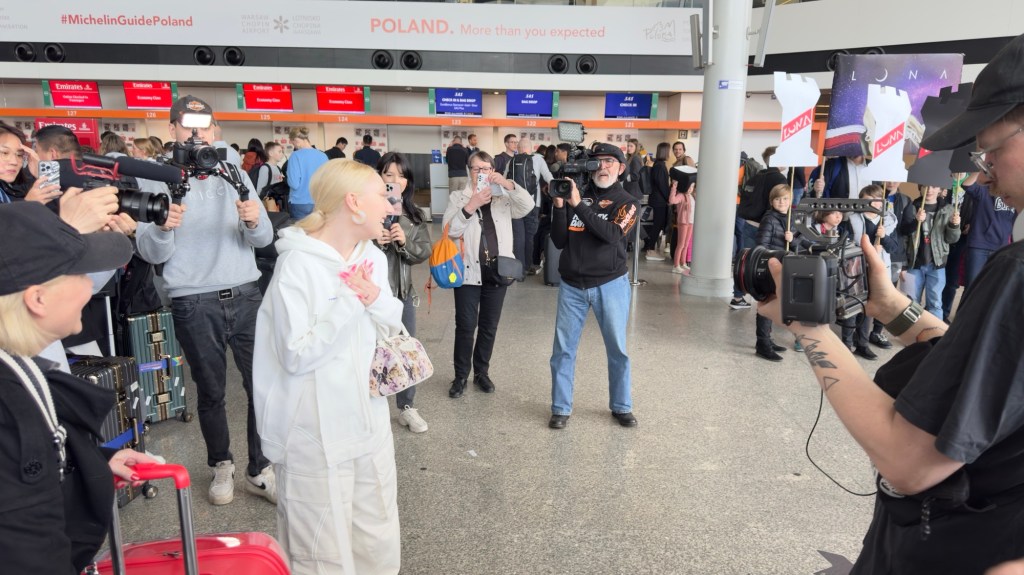 Luna i ekipa są już w Skandynawii, a jutro w Malmo wokalistka będzie miała swoją pierwszą próbę występu do „The Tower”. Dziś na lotnisku Chopina w Warszawie przygotowano dla niej niespodziankę – terminal wylotów odwiedził chór Artos im. Władysława Skoraczewskiego, w którym wokalistka kiedyś śpiewała. Dzieci i dorośli przygotowali transparenty, okrzyki, a dla „Pytania na Śniadanie” zaśpiewali eurowizyjne „The Tower” i wiwatami powitali reprezentantkę Polski, która zupełnie nie spodziewała się takiego przyjęcia. Na lotnisku obecne były też liczne media, które przeprowadziły z wokalistką ostatnie przed Eurowizją wywiady z Polski. Byli też przedstawiciele mediów eurowizyjnych czy czytelnicy Dziennika Eurowizyjnego, którzy mieli okazję zrobić sobie z Luną zdjęcie, otrzymać autograf, czy – jak w przypadku naszej redaktorki Emilii – podarować reprezentantce flagę naszego kraju. Polska delegacja jest w wyśmienitych humorach, obiecali, że dadzą z siebie wszystko i prosili o mocne trzymanie kciuków oraz wspieranie. „Zobaczycie występ, to będzie super” – krzyknęła fanom Luna przed pożegnaniem.