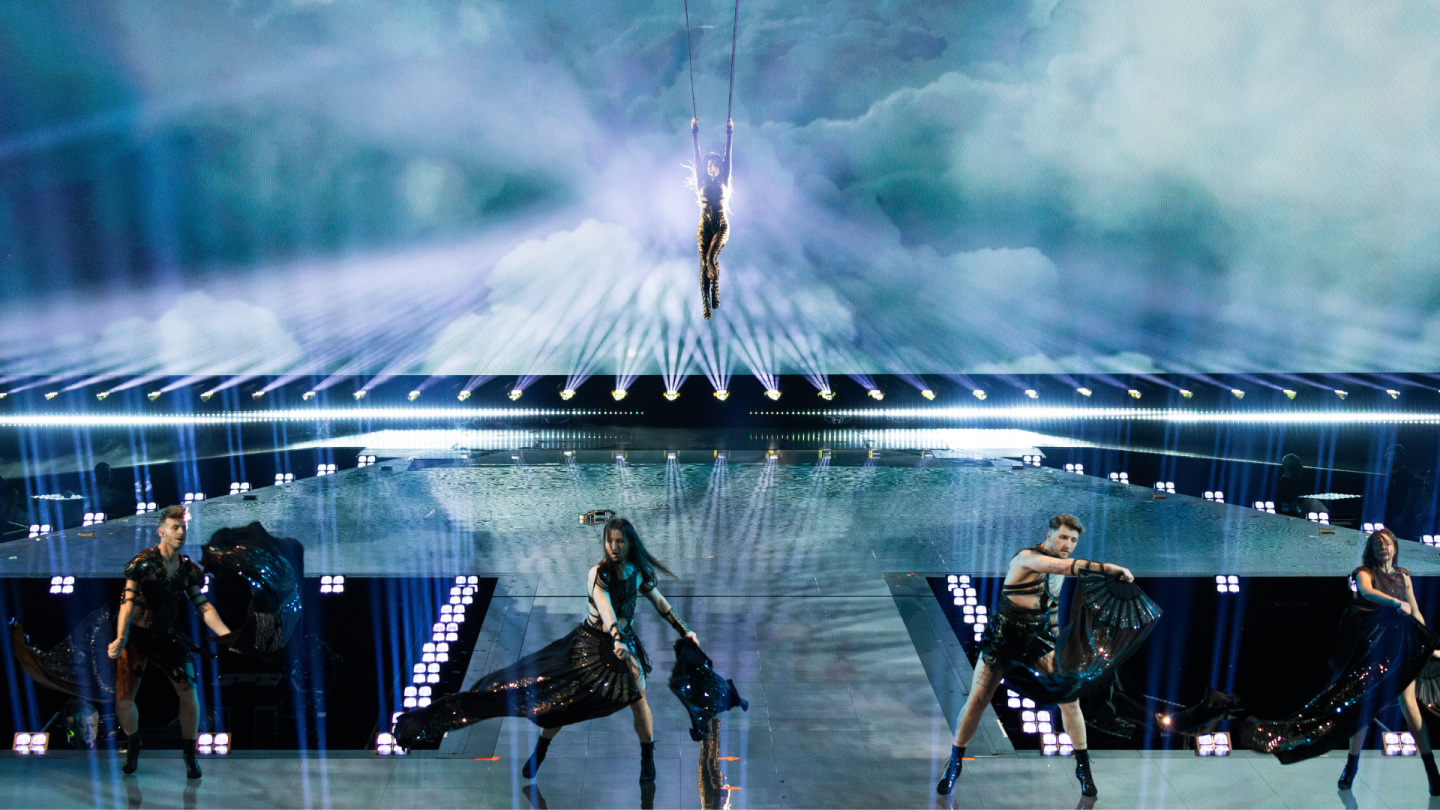 Europejska Unia Nadawców parę tygodni temu zorganizowała webinar dla mediów eurowizyjnych dotyczący tego w jaki sposób relacjonować Konkurs Eurowizji. Spotkanie nie wniosło za wiele, ale prowadzący podkreślał, by korzystać z oficjalnych źródeł, tj. ze strony Eurovision.tv i social mediów konkursu. Jak na ironie, to właśnie oficjalne źródło wprowadziło wczoraj media eurowizyjne w błąd, źle opisując polski występ z próby. Obserwatorka Heidi z Eurovision digital team, której opis został przytoczony wielokrotnie zarówno w Polsce jak i na świecie, mówiła o sfruwaniu Justyny na scenę na początku występu co nie jest prawdą, bo wokalistka zastosuje podwieszanie w innym momencie występu. Dopiero dziś do opisu otrzymaliśmy trzy oficjalne zdjęcia wykonane na potrzeby EBU i nadawców uczestniczących. Sporo one zdradzają, bo poza strojem i elementami choreografii widzimy też mistycznego smoka w wizualizacjach, którego obecność była już wcześniej zapowiadana. Możemy też dostrzec moment w którym Justyna gra na skrzypcach na tle wirujących planet oraz samo podwieszanie. Jest mistycznie, epicko, nieco mrocznie, pełno mamy dymu i wiatru.